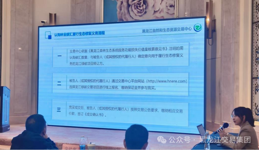 會(huì)上,自然生態(tài)交易中心詳細(xì)解讀了龍江綠碳市場(chǎng)政策背景、交易情況、價(jià)值轉(zhuǎn)化模式,并就龍江綠碳質(zhì)押貸款和碳匯司法流程進(jìn)行了深入講解。學(xué)員們學(xué)習(xí)熱情高漲,認(rèn)真聽講,積極思考,主動(dòng)參與研討。通過(guò)系統(tǒng)學(xué)習(xí)與交流,對(duì)龍江綠碳創(chuàng)新轉(zhuǎn)化路徑進(jìn)一步了解,有力推動(dòng)了省內(nèi)碳匯司法、質(zhì)押貸款等業(yè)務(wù)的規(guī)范化、專業(yè)化發(fā)展。